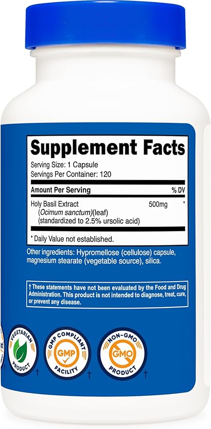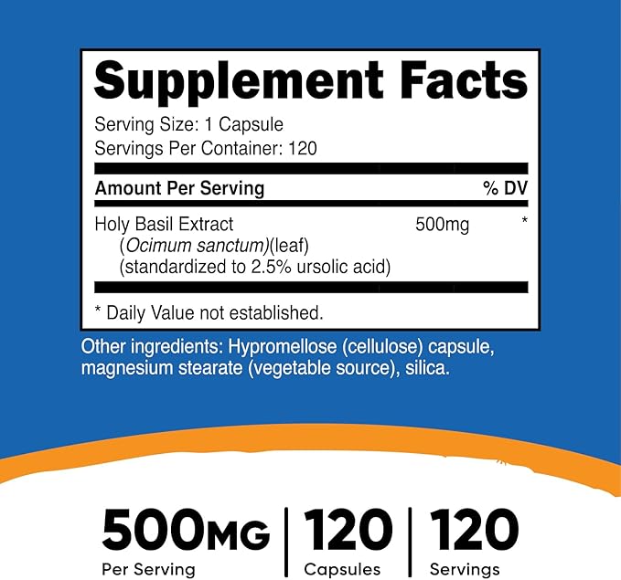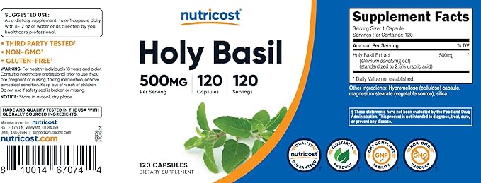 Nutricost Holy Basil Capsules 500mg, 120 Vegetarian Capsules - Gluten Free, Non-GMO