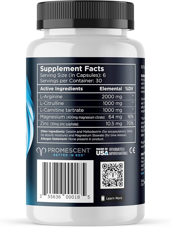 Promescent VitaFLUX Nitric Oxide Supplement, L Arginine l Quality Citrulline Supplements for Men, Supports Healthy Blood Flow, Nitric Oxide Booster Arginine Supplement, 180 Capsules