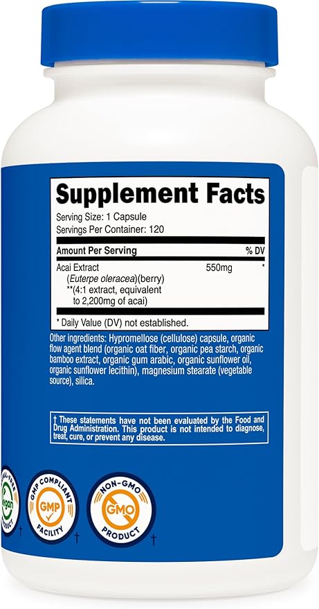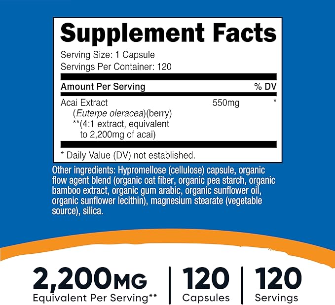 Nutricost Acai Extract 2,200mg, 120 Vegetarian Capsules (Euterpe Oleracea) from 550mg of 4:1 Extract - Non-GMO, Gluten Free