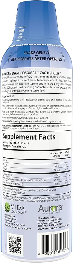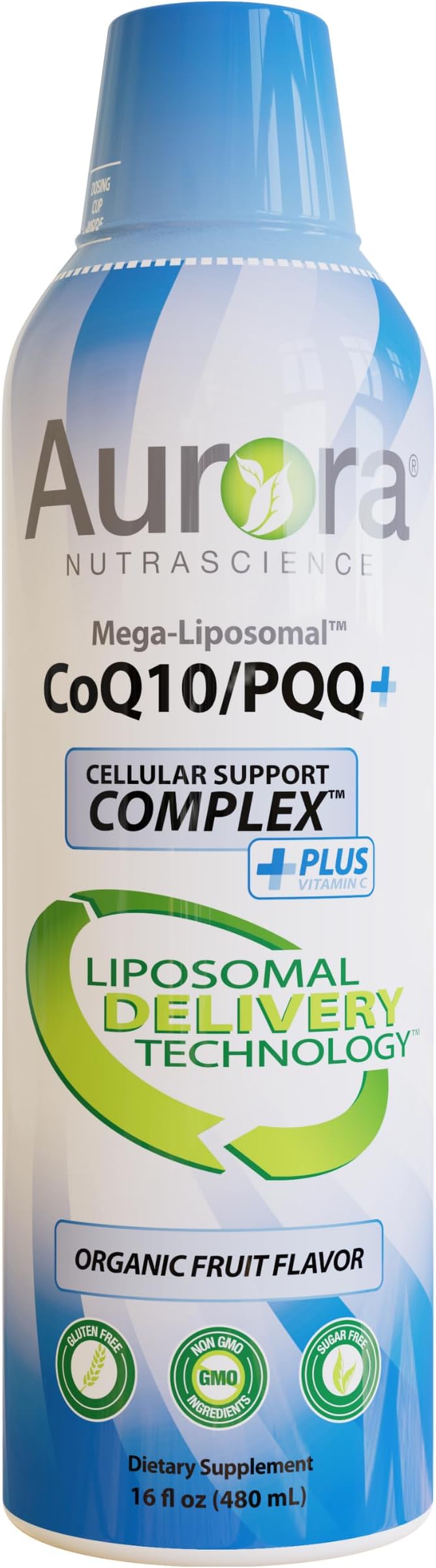 Aurora Nutrascience Mega-Liposomal CoQ10, PQQ & Vitamin C, Energy and Cellular Support, Gluten Free, Non-GMO, Sugar Free, Strawberry, 32 Servings, 16 fl oz
