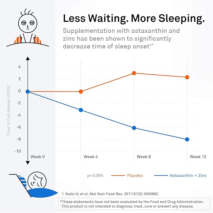 - Less Waiting, More Sleeping - We formulated these dual-action immunity support sleep aids for adults who need a formula that can help calm their body down before bed, so they can fall asleep faster. Low dose melatonin combines with Zinc and Astaxanthin, which have been shown to significantly decrease time of sleep onset.*