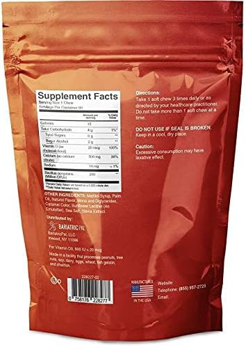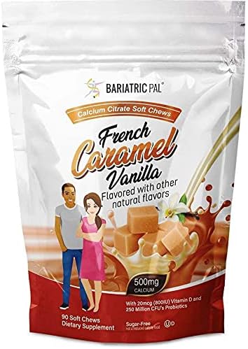 BariatricPal Sugar-Free Calcium Citrate Soft Chews 500mg with Probiotics (90 Count) - French Caramel Vanilla