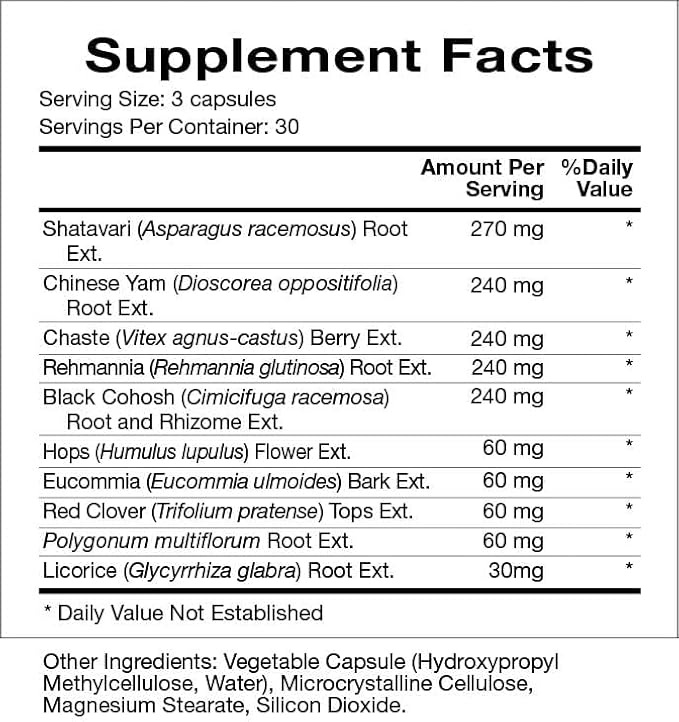 - Elevate your holistic health journey with our synergestic formula. Crafted with Shatavari, Chinese Yam, Chaste Tree, Rehmannia, Black Cohosh, and Lifenol, it revitalizes essential fluids, supports reproductive health, and enhances overall well-being by naturally balancing hormonal function.*