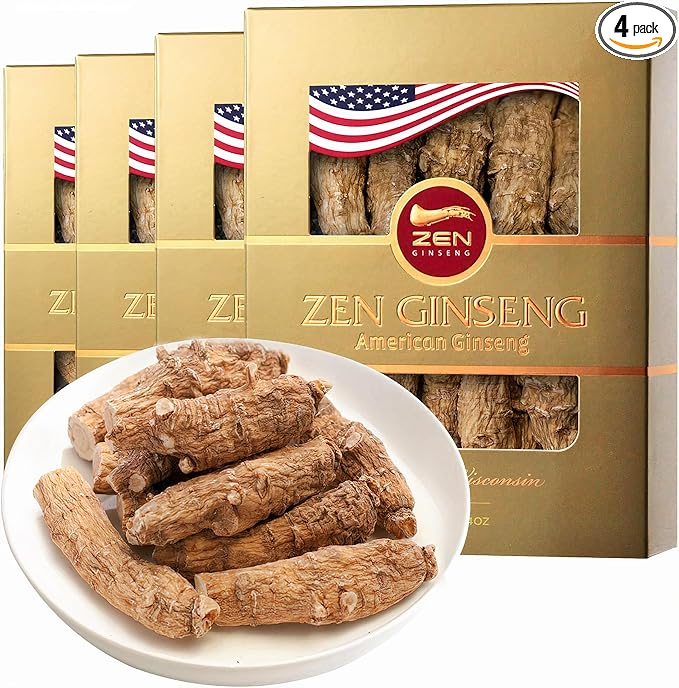 4 Boxes of Premium Large American Ginseng Root (4oz per Box) - Non-GMO, Gluten Free Wisconsin Ginseng. Boosts Immunity, Energy & Stamina for Man & Women