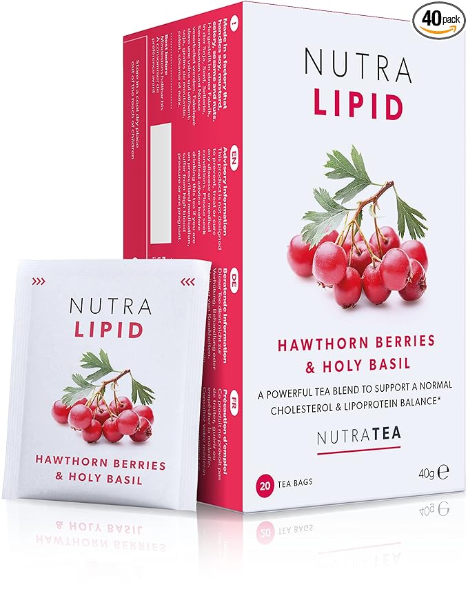 Nutra Tea NUTRALIPID - Lipid Management Tea | Cholesterol Tea – Supports Cholesterol Levels and Heart Health – Includes Red Yeast Rice & Fenugreek - 40 Enveloped Tea Bags Herbal Tea - (2 Pack)