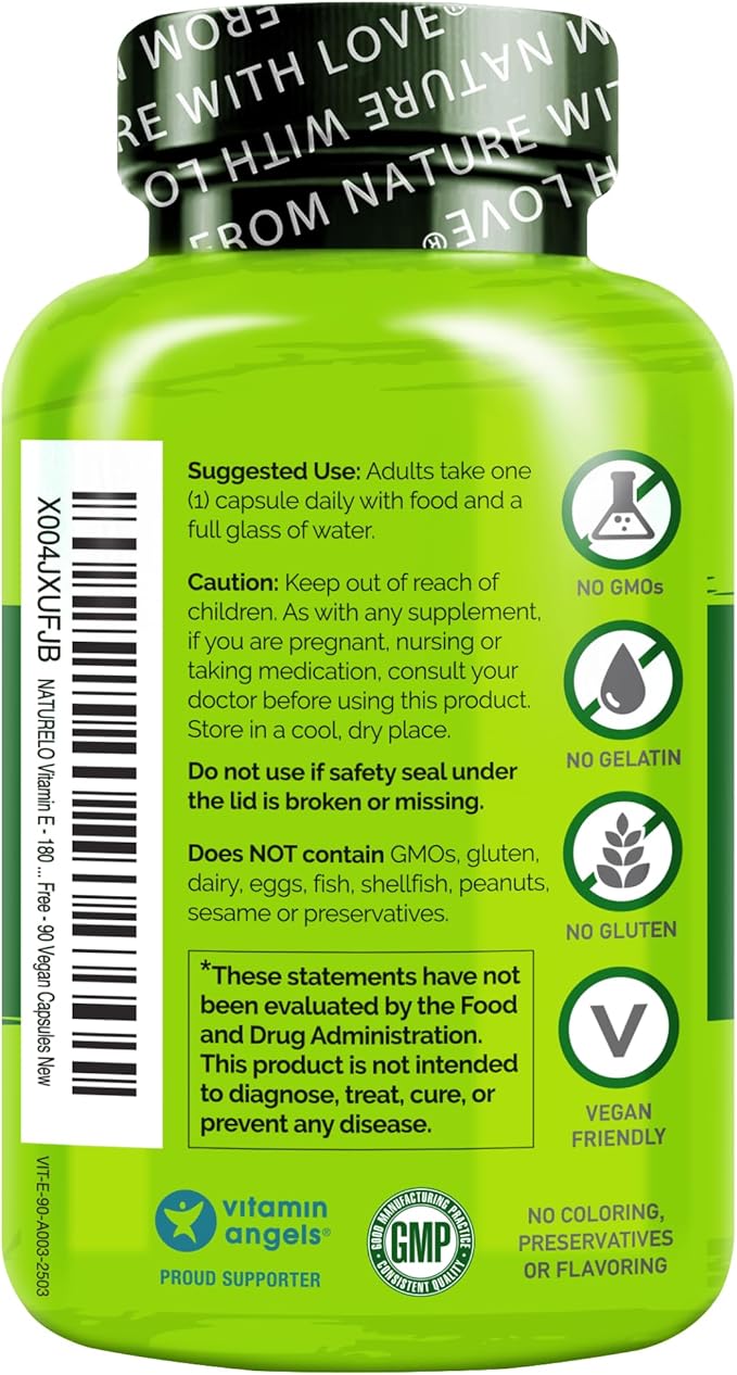 - HIGH POTENCY: 3-month supply of capsules containing 180 mg of Vitamin E. Take one dry form Vitamin E capsule a day to get 180mg of alpha tocopherol plus mixed tocopherols including beta, gamma and delta tocopherol.