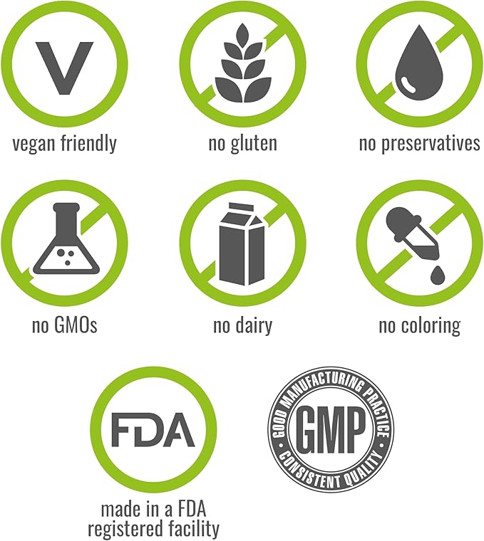- PREMIUM QUALITY: Unlike cheaper brands, this product is made with premium ingredients that are Non-GMO, Gluten Free, Vegan & Vegetarian, and contain NO Coloring, Flavoring, or Preservatives of any kind.
