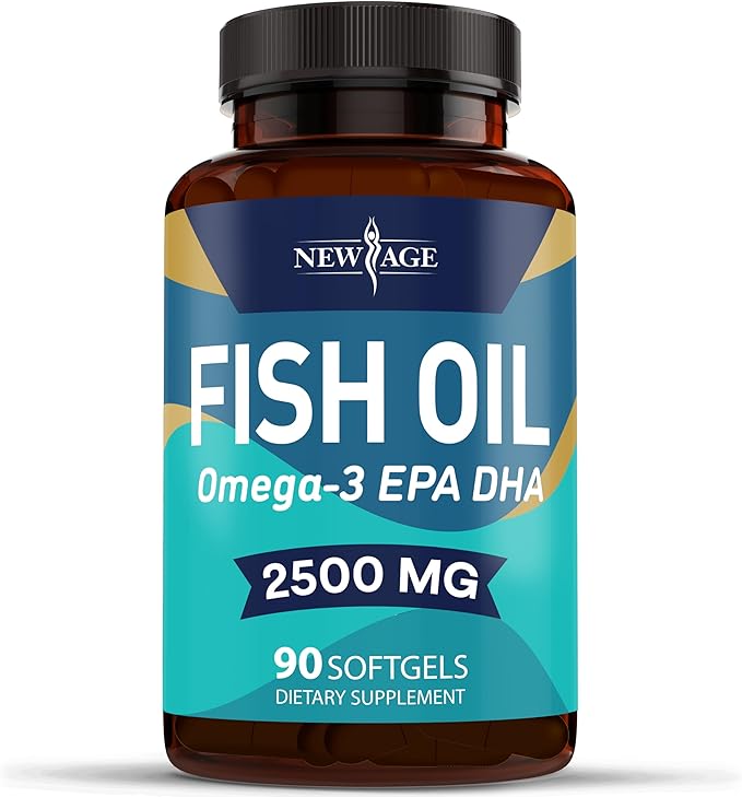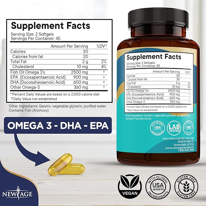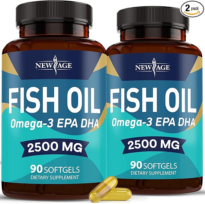 NEW AGE Omega 3 Fish Oil 2500mg Supplement Non GMO - EPA, DHA Fatty Acids Gluten Free (180 Softgels (Pack of 2))