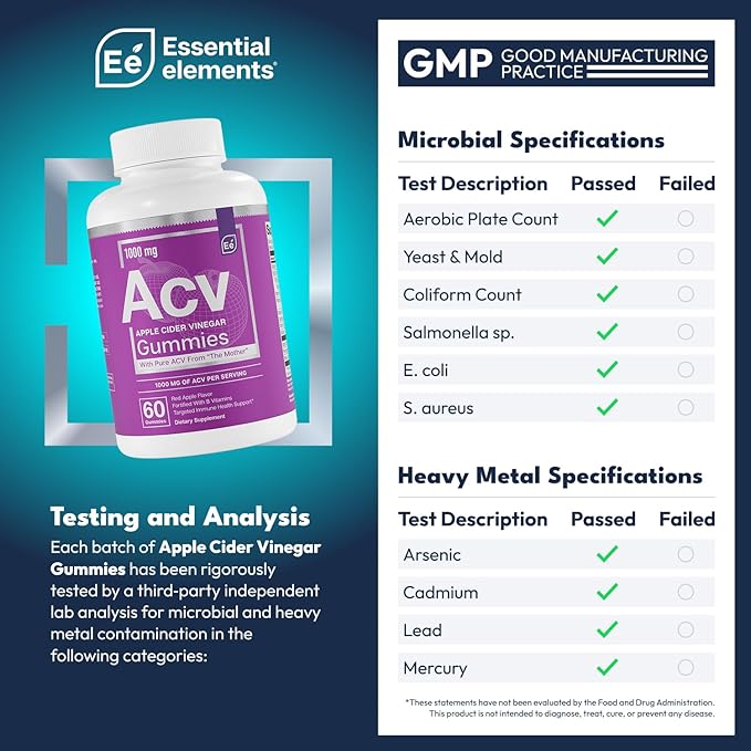 - ACV WITH “THE MOTHER”: Essential elements Apple Cider Vinegar Gummies get their ACV derived straight from The Mother. This substance, naturally produced as part of the vinegar fermentation process, is filled with naturally-occuring levels of enzymes, proteins, and good bacteria.*