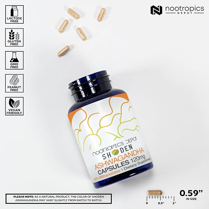 Nootropics Depot Shoden Ashwagandha Extract Capsules | 120mg | 90 Count | 35% Withanolides