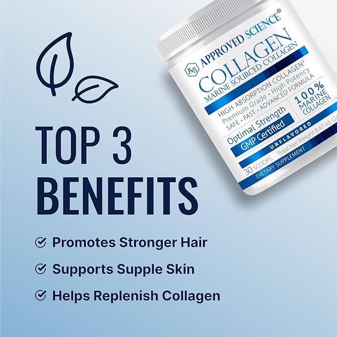 Approved Science Collagen Powder - Skin and Hair - 90 Scoops - Three Month Supply - Made in The USA