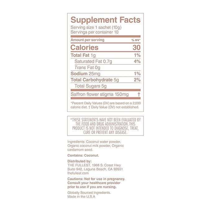 THE FULLEST - Warm Feelings 10-Single Serving Saffron Latte Sachets - Saffron, Cardamom, and Coconut Milk Based Wellness Powder for Mood and Sleep Support, Sugar-Free, Vegan, and Gluten-Free, 10 Count