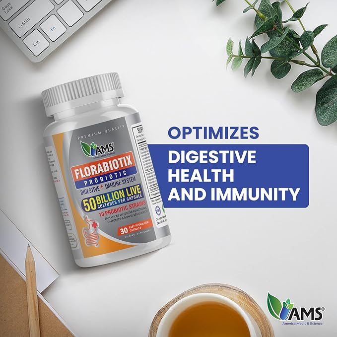 America Medic & Science Florabiotix Probiotic (30 Capsules) | Dietary Supplement for Men and Women| 50 Billion Live Cultures | 10 Probiotic Strains | Supports Digestive and Immune Health