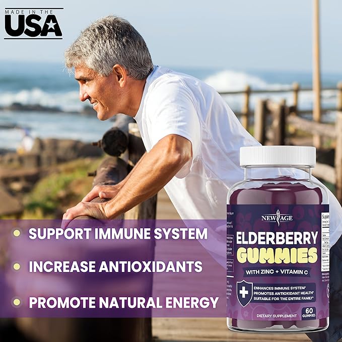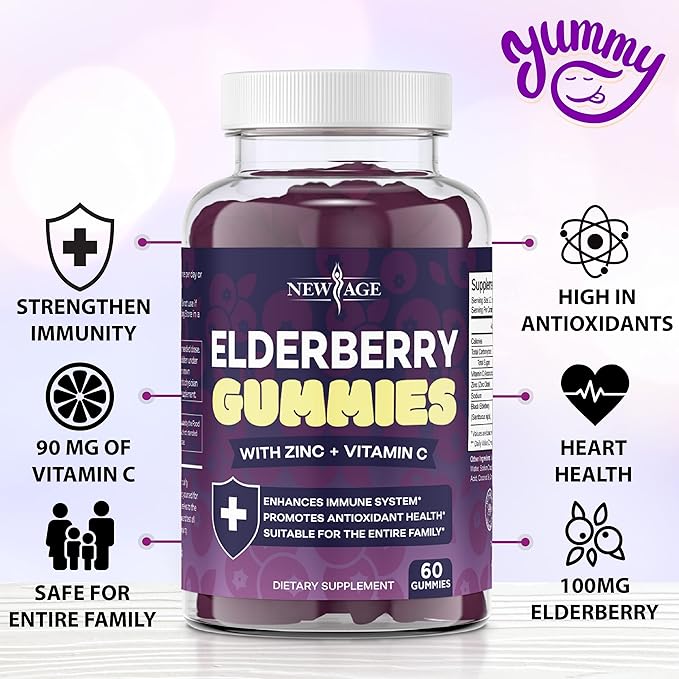 - Safe for Entire Family: Your whole family will love taking New Age Elderberry Gummies. With critical immune boosters elderberry, vitamin C, and zinc, a delicious flavor, and powerful immune support for kids, your entire family will keep coming back for more.
