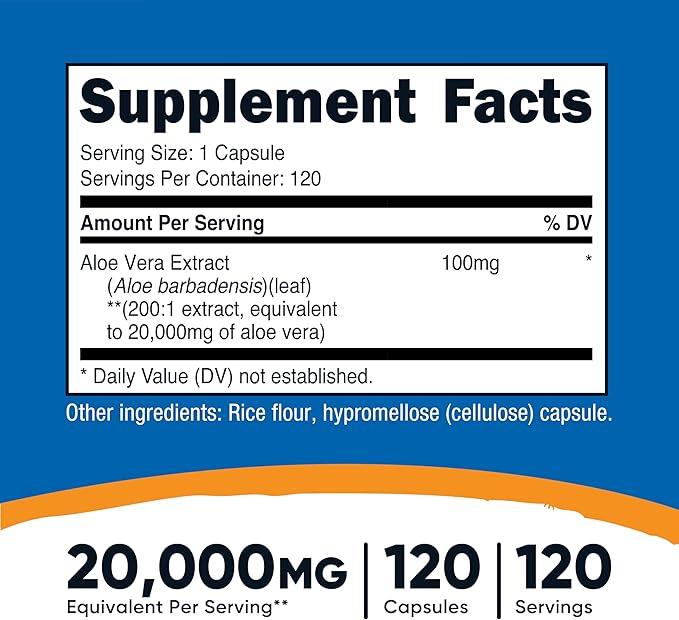 Nutricost Aloe Vera 20,000mg, 120 Capsules - Gluten Free, Non-GMO, Vegetarian Friendly (100mg of 200:1 Extract)