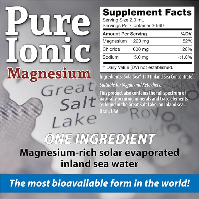 - NEW PRODUCT - HIGHEST CONCENTRATION OF MAGNESIUM; LOWEST SODIUM; ALL NATURAL - The only ingredient in this premium magnesium supplement is concentrated Great Salt Lake sea water that has been solar evaporated to the highest level of magnesium possible. Nearly all the sodium drops out naturally through evaporation making this supplement the lowest in sodium, too. It takes two years for nature to make this product.