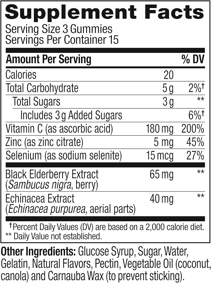 OLLY Immunity Gummy, Immune Support, Elderberry, Zinc, Vitamin C, Supplement, Berry Flavor, 15 Day Supply - 45 Count