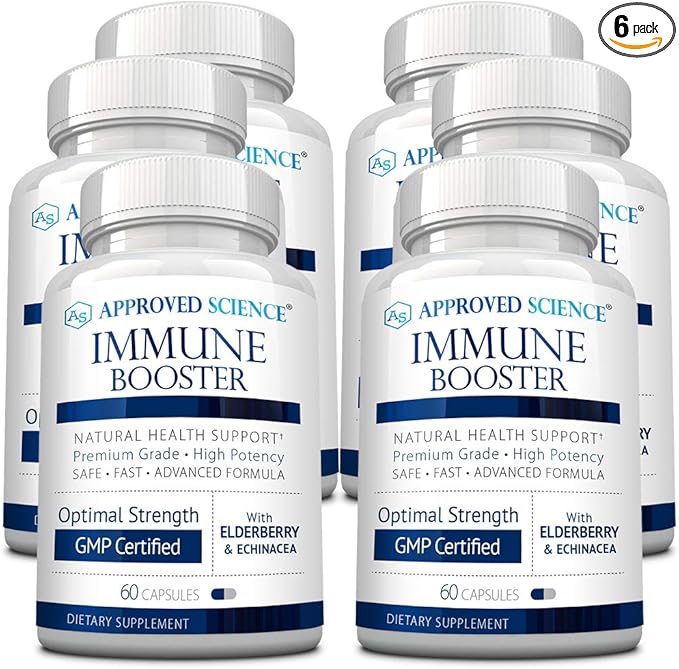 Approved Science® Immune Booster - Extra Strength Support - Elderberry Extract, Echinacea, Vitamin D3 and C, Zinc - All Natural - 360 Capsules - 6 Month Supply