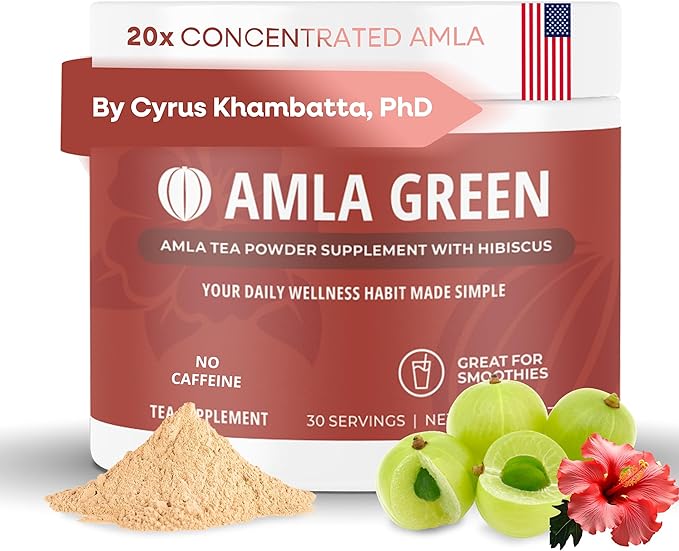 Amla Powder & Green Tea Superfood Supplement with Hibiscus, 20x Ultra Concentrated Amla, Antioxidant Support, Made with Oolong Tea and Indian Gooseberries, Organic, Vegan, Hibiscus, 30 Servings