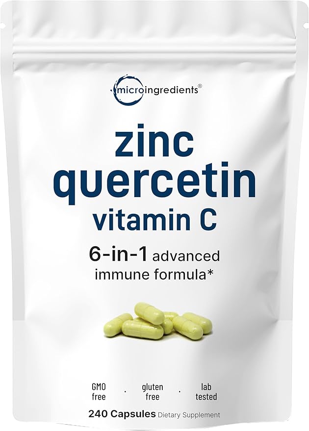 Micro Ingredients Quercetin with Vitamin C and Zinc, 240 Capsules | Quercetin 500mg, Vitamin C 500mg, Zinc 50mg (Picolinate, Citrate, Glycinate, Gluconate) | Complete Immune Support Supplements