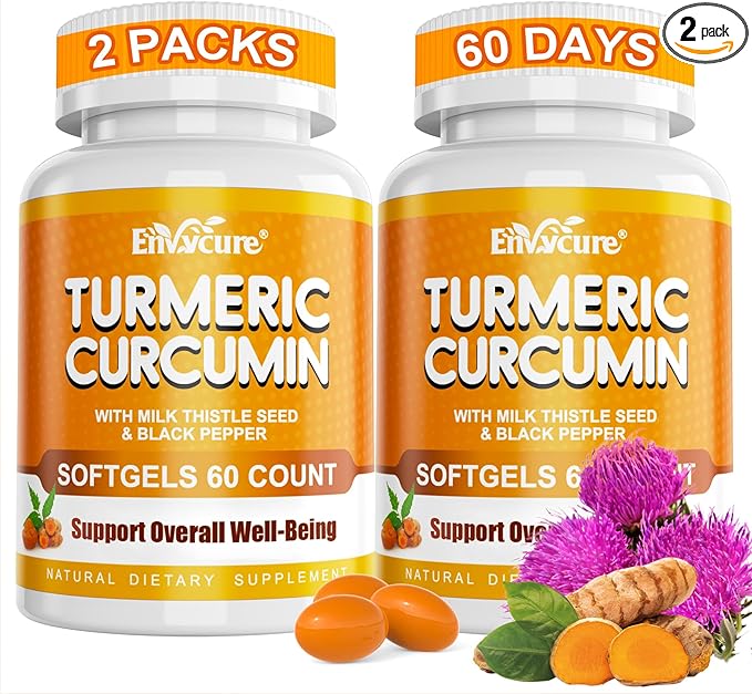 - 【Vegan Turmeric Softgels Capsules, Non-GMO 】Our turmeric curcumin capsules with milk thistle seed extract are free of soy, gluten, milk, egg, wheat, peanuts, artificial flavors, and preservatives, it is a natural turmeric supplements which can help support overall well-being