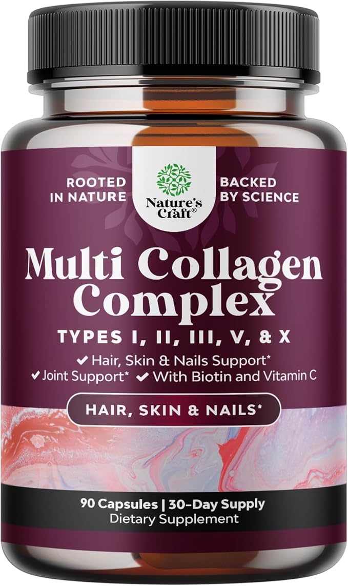 Advanced Multi Collagen Complex - Ageless Multi Collagen Peptides Supplements with Type 1 2 3 5 & X & Biotin for Hair, Skin and Nails Vitamins - Biotin Supplements for Women & Men - 90 Count
