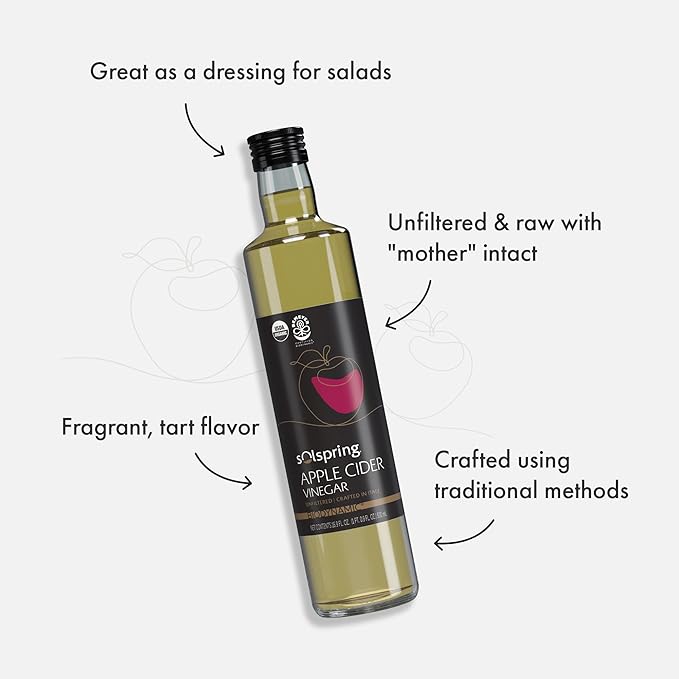- Contains: (2) 16.90 Ounce Bottles of Solspring Biodynamic Organic Apple Cider Vinegar (33 Servings per Bottle)