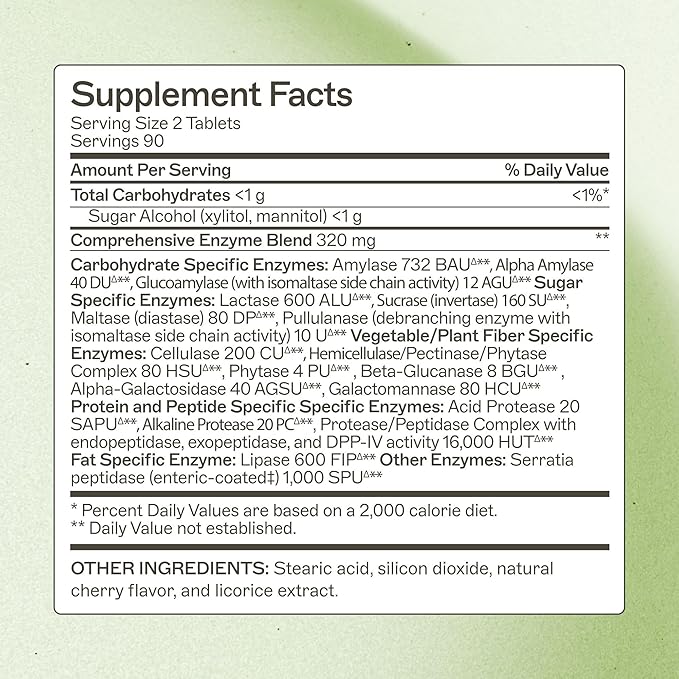 - Offers a comprehensive blend of enzymes to help break down peptides, proteins, carbohydrates, sugars, lipids/fats, and vegetable fiber