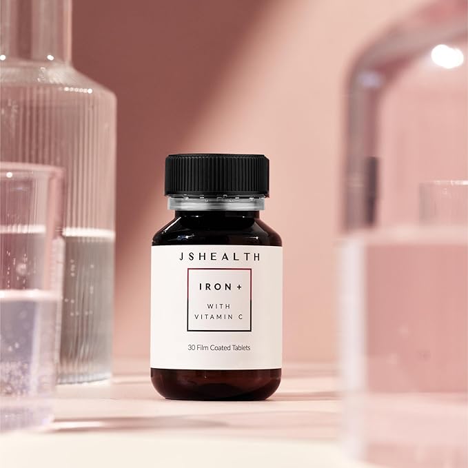 JSHealth Vitamins Iron+ Supplement for Energy Support - Iron Deficiency Pills with Vitamin C and Vitamin B12 - No Nausea - (30 Tablets)