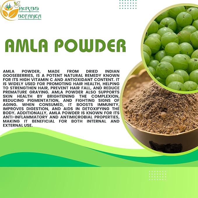 - Amla powder consists of Indian Gooseberry leaves that are grounded. Ayurvedic medicine has used this remedy for decades to treat medical conditions like jaundice and diarrhea. However, Amla’s most widely known benefits constitute ultimate hair health.