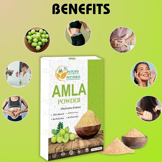 Natural Amla Powder (Indian Gooseberry, Amalaki), Pure Natural Fruit Powder with Vitamin C for Hair Growth & Immune Support, Emblica Officinalis, 5.3 oz / 150 gm