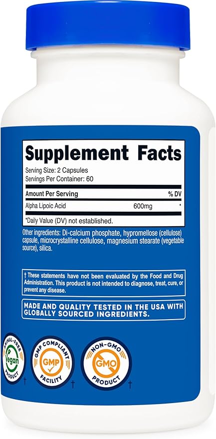 Nutricost Alpha Lipoic Acid 600mg Per Serving 120 Capsules, 60 Servings - Plant Based Caps, Non-GMO