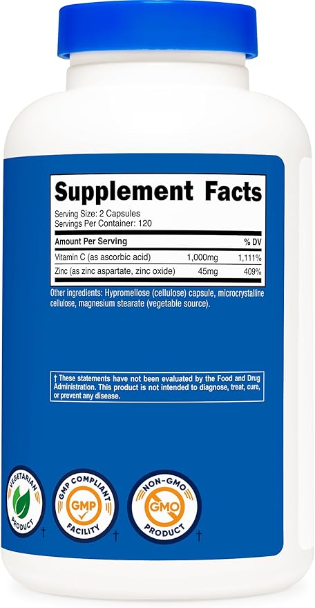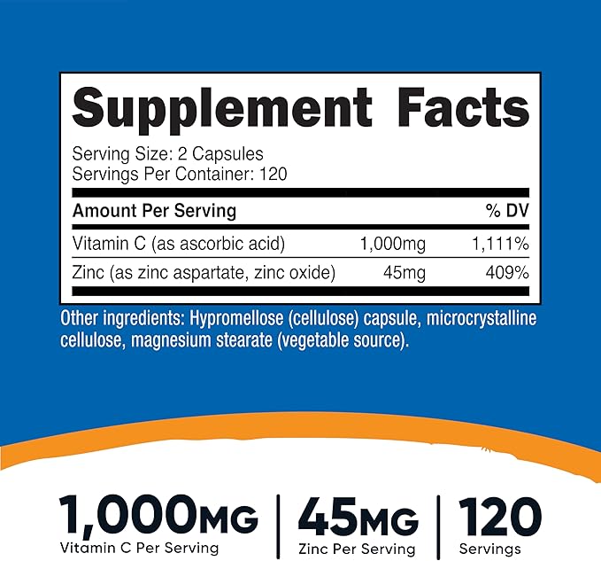 - 1000mg of Vitamin C, 45mg of Zinc Per Serving