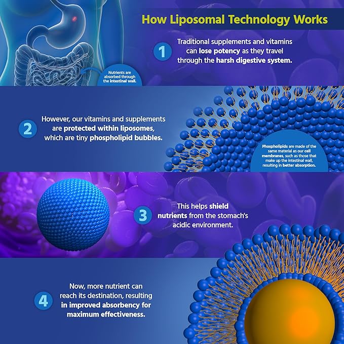 - MAXIMUM ABSORPTION LIPOSOMAL TECHNOLOGY: Unlike traditional supplements, where the active ingredients get destroyed by acids in the digestive tract, Core Med Science uses Liposomal Technology to protect nutrients with a liposomal “bubble” to safely deliver nutrients into the bloodstream for optimal absorption. Provides up to 80% more absorption and is also gentler on your stomach.