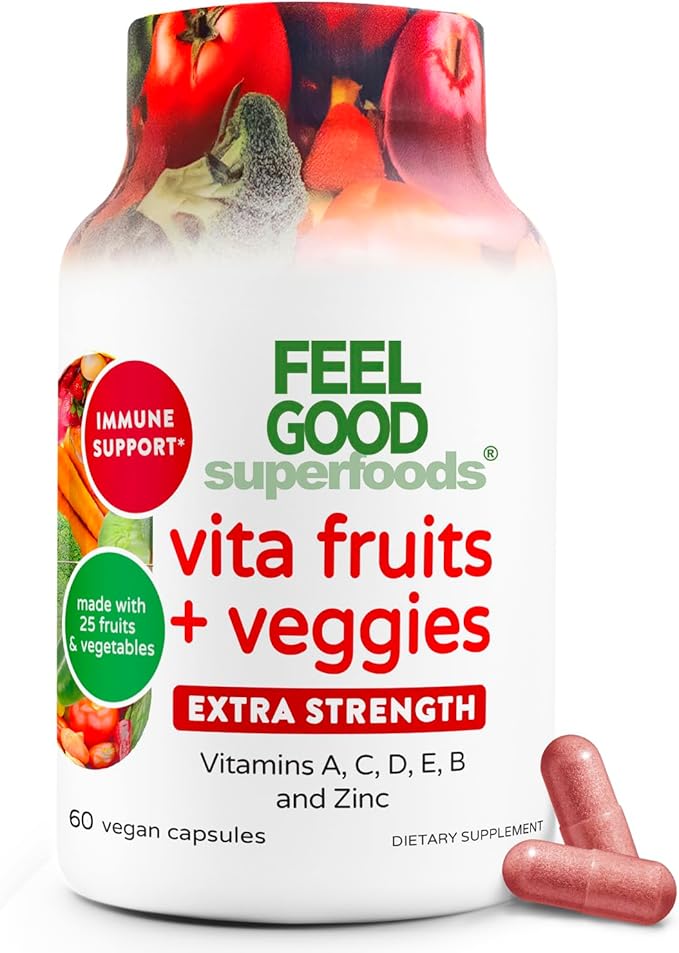 - FRUITS AND VEGGIES IN A CAPSULE: Powerful blend of 25 superfood fruit and vegetable ingredients combined with potent immunity vitamins in every serving to provide a boost of nutrients in 2 easy-to-swallow pills; Immune supplements are gluten free, vegetarian, and non-GMO