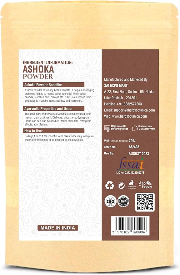 - Gentle and effective: Our finely ground Ashoka Powder is easily absorbed by the body, ensuring maximum efficacy. You can make a paste using the bark or leaves and apply it to affected areas for relief.