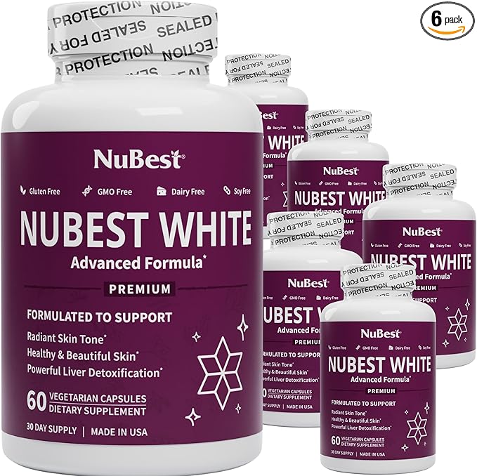 - Vegan-Friendly Supplement: Our NuBest White delivers Glutathione 400mg from natural sources to help the body sustain healthy levels of this precious nutrient. Combined with Milk Thistle extract, Glutathione in NuBest White supports antioxidant to boost your immune system, detox free radicals from the body, supports healthy aging, liver, and brain function, and assists in overall health and wellbeing.