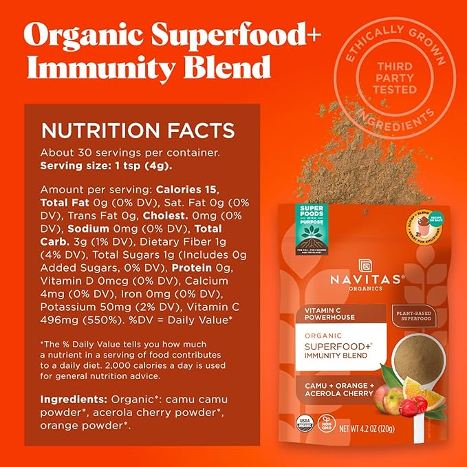 Navitas Organics Superfood+ Immunity Blend (Camu + Orange + Acerola Cherry), 30 Servings — Organic, Non-GMO, Vegan, Gluten-Free, Keto & Paleo, 4.2 Ounce…