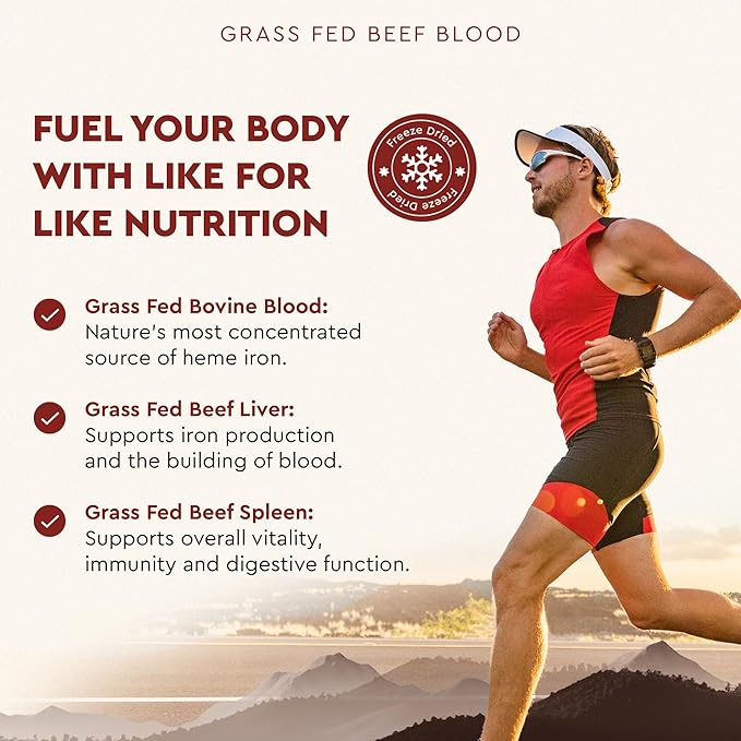 - WHOLE FOOD NUTRITION FOR LIVER HEALTH: Grass Fed Blood offers nourishment that only whole foods (and whole food supplements) can provide to support the high energy demands of an active lifestyle with bioavailable heme iron, Vitamin B 12, and bioidentical Vitamin D.