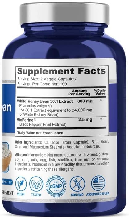 - High Absorption White Kidney Bean 24,000mg equivalent per serving 2 capsules with Bioperine
