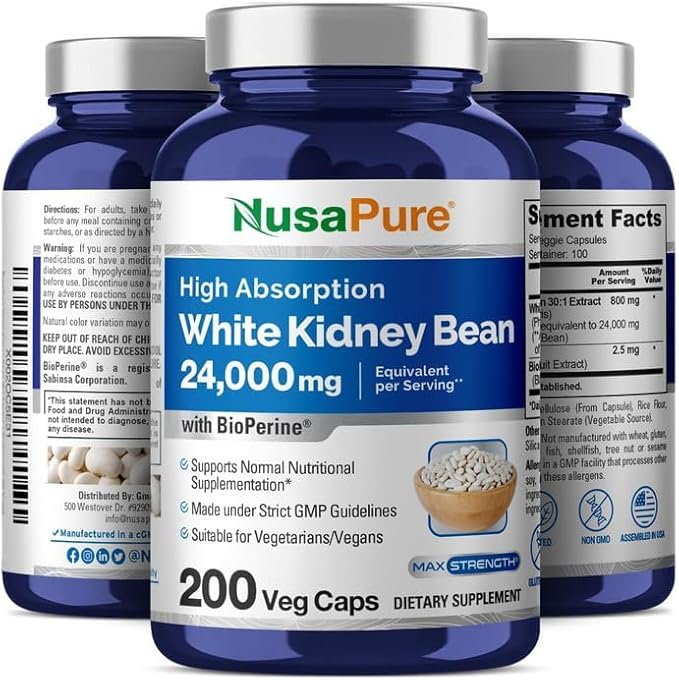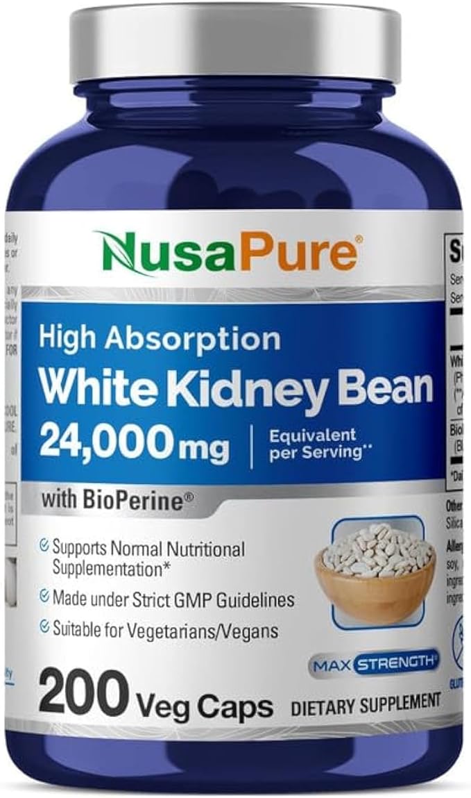 NusaPure White Kidney Beans 24,000mg per Serving - Bioperine - Extract 30:1 (Vegan, Non-GMO)