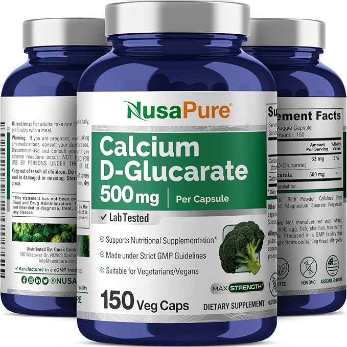 NusaPure Calcium D-Glucarate 500 mg 150 Veggie Caps, Vegan, Non-GMO, Gluten-Free