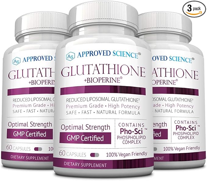 Approved Science® Glutathione - 500 mg - Phospholipid Complex, Vitamin C, Bioperine - Top Antioxidant to Help Neutralize Free Radical - Vegan Friendly - 60 Capsules per Bottle - 3 Bottles