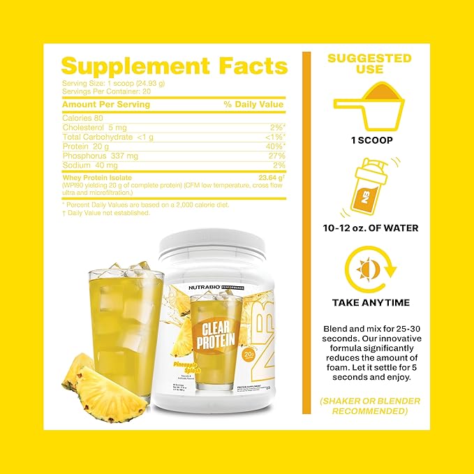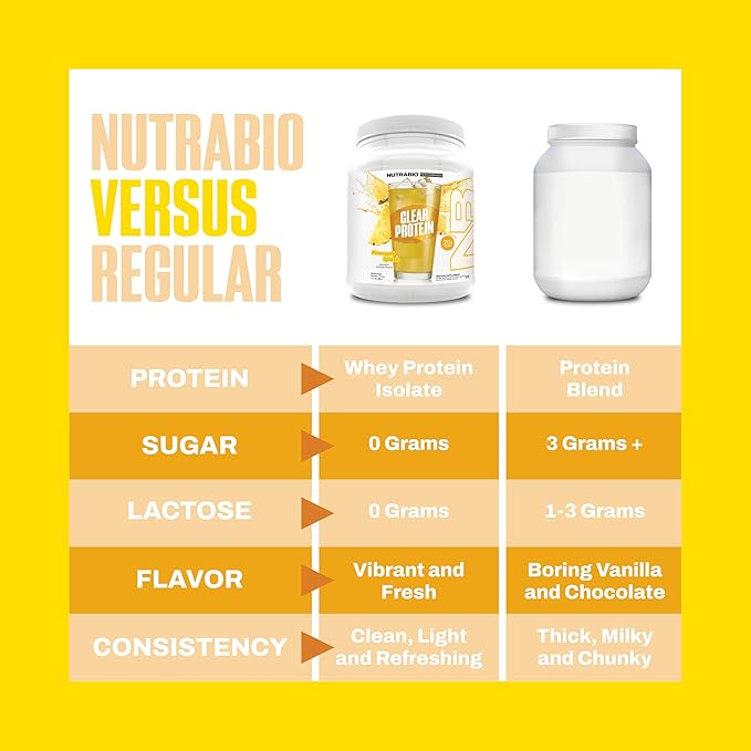 - CLEAN LIGHT & REFRESHINGLY FRUITY: Experience the clear choice with NutraBio Clear Whey Protein Isolate—a deliciously fruity, light clear protein drink that feels more like a refreshing juice than a typical thick and milky protein shake.