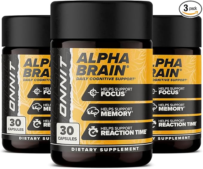 ONNIT Alpha Brain Nootropic Focus Capsules, Nootropics Brain Support Supplement for Memory, Mental Clarity and Cognitive Support with L-Theanine, Vitamin B6 and Huperzine A, 3-Pack (90 Count Total)