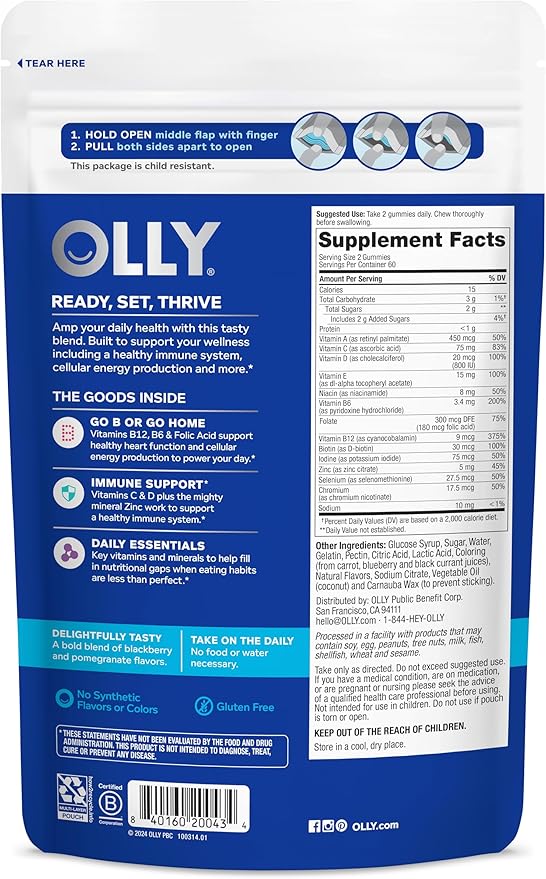 - LESS PLASTIC, MORE GUMMIES: This supply comes in a handy child-resistant pouch—you get more of the gummies you love using less plastic. Perfect as a starter or as a refill for your empty OLLY bottle