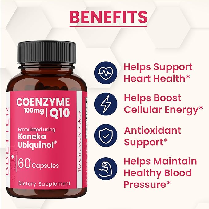 BBETTER Coenzyme Q10 – 100 mg with Kaneka Ubiquinol, Active Form of CoQ10 -Supports Cellular Health & Natural Energy Production- High-Absorption Formula - 60 Softgels