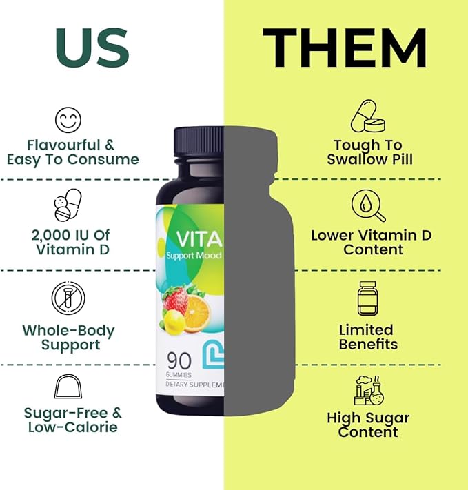- Support for Mental & Nervous System Functions: Beyond immunity and bones, these Vitamin D supplements are formulated to support healthy mental and nervous system functions. Regular intake of our VIT D3 2,000 IU gummies can aid in maintaining cognitive clarity and nerve health, making them an excellent daily addition for holistic body support.