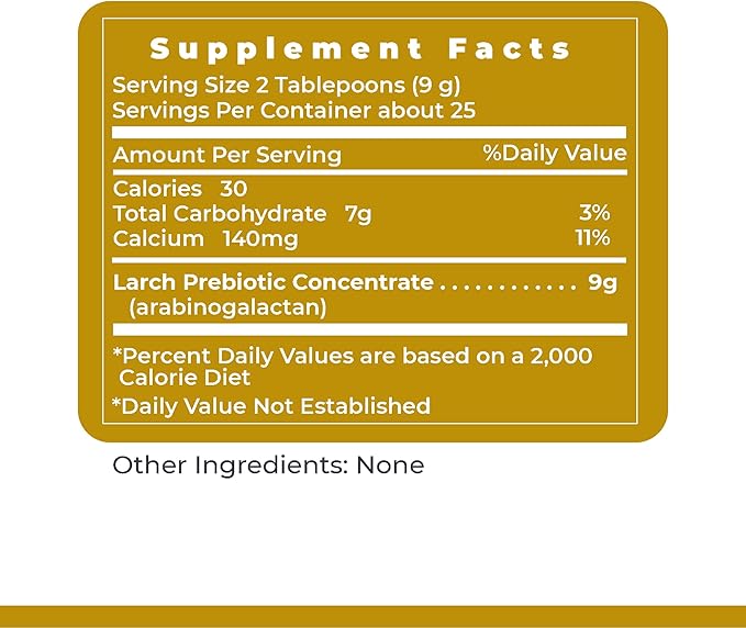 - POTENT INGREDIENTS: Each serving of our probiotic fiber drink mix contains an astounding 9 grams of larch prebiotic concentrate (arabinogalactan) and 140 mg of calcium for added mineral support