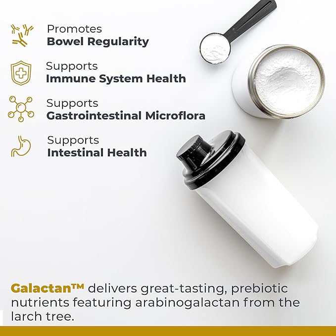 - SOLUBLE FIBER MIX: Galactan is an immune-promoting soluble powder and a rich source of prebiotics that readily mixes into smoothies, water, juice or other drinks
